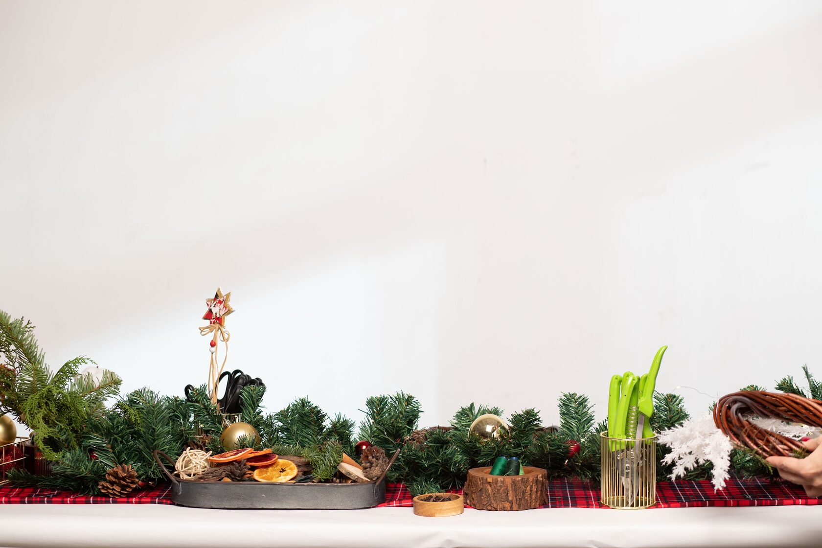 Участники мастер-класса создадут основу для композиции из флористической губки и крафтового стакана (в качестве альтернативы стаканчику может быть шляпная коробка, кружка, бокал – уточняйте подробности у менеджера). В готовой основе расположатся веточки нобилиса, корица, апельсинки, шишки и новогодний декор.